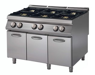 Cucina a gas 6 fuochi,con forno a gas e vano a giorno.